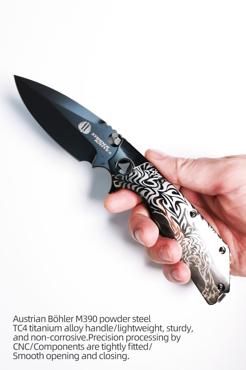 H250-C folding knife Böhler M390 high quality steel Mirror/DLC Diamond-Like Carbon titanium alloy hilt Fruit knives