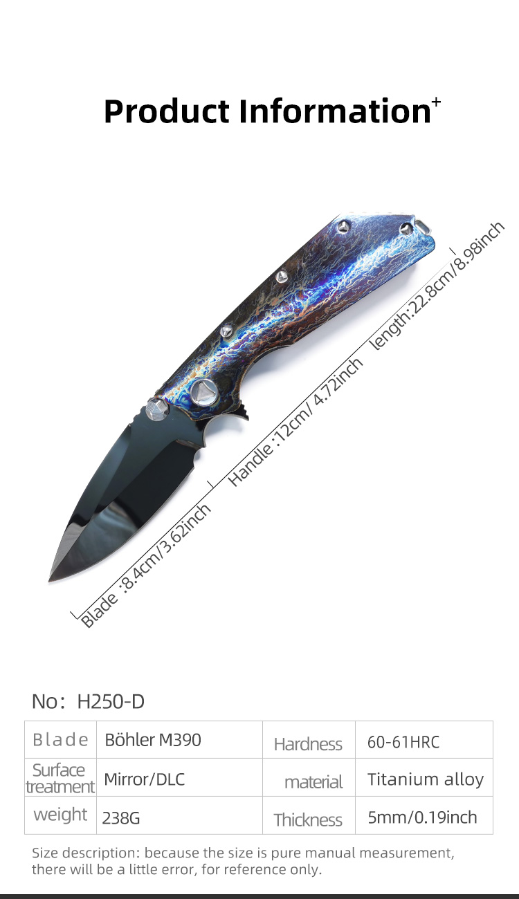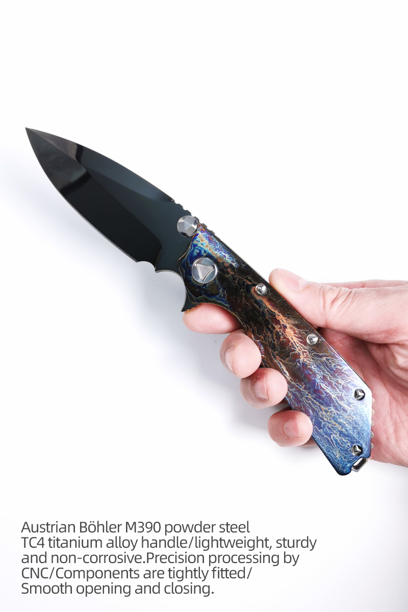 H250-D folding knife Böhler M390 high quality steel Mirror/DLC Diamond-Like Carbon titanium alloy hilt Fruit knives