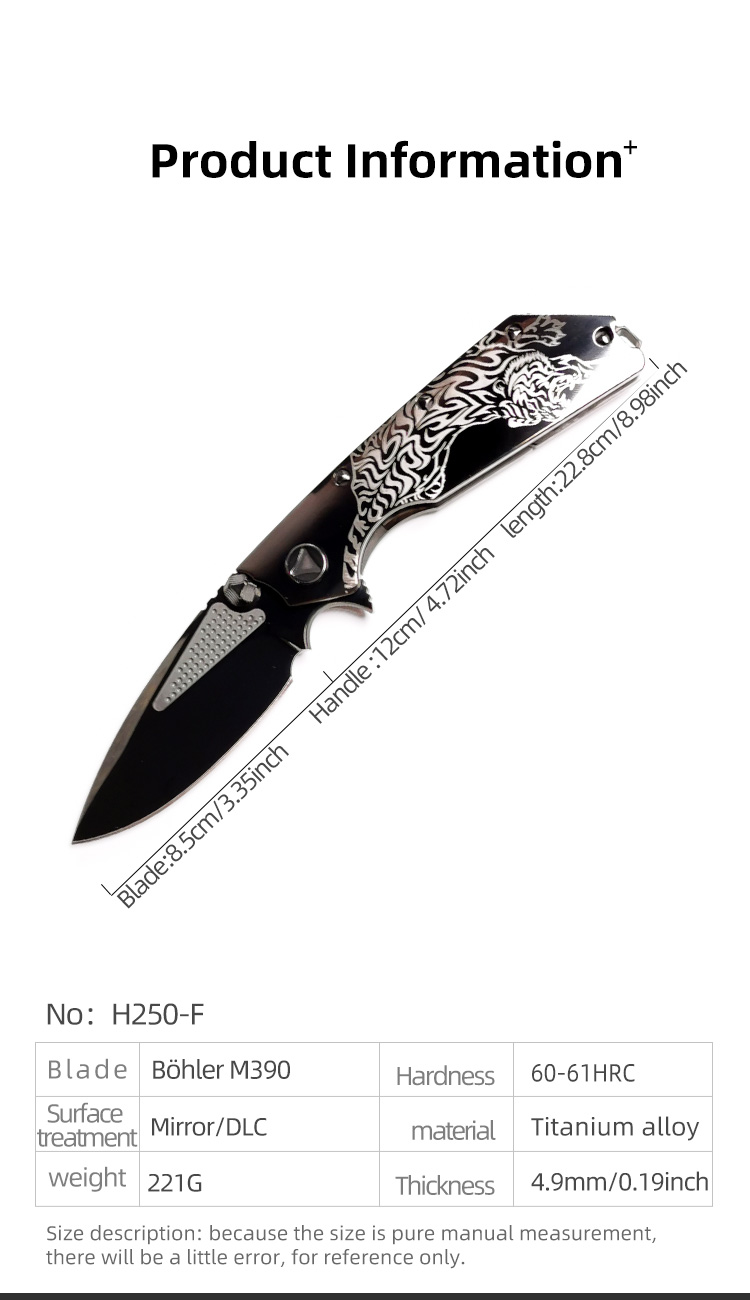 H250-F folding knife Böhler M390 high quality steel Mirror/DLC Diamond-Like Carbon titanium alloy hilt Fruit knives