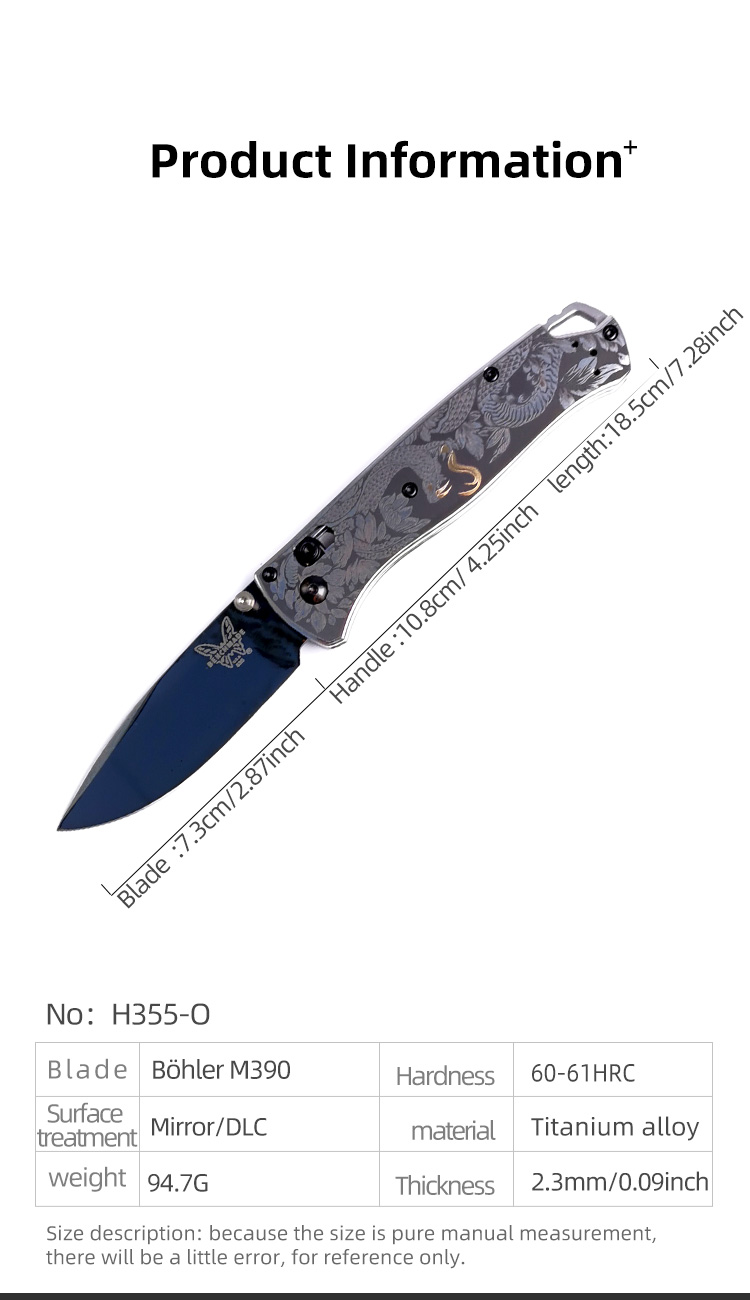 H355-O folding knife Böhler M390 high quality steel Mirror/DLC Diamond-Like Carbon titanium alloy hilt Fruit knives