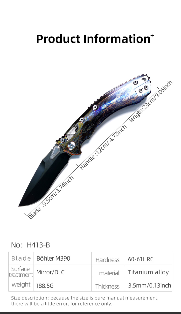 H413-B folding knife Böhler M390 high quality steel Mirror/DLC Diamond-Like Carbon titanium alloy hilt Fruit knives H413-B folding knife Böhler M390 high quality steel Mirror/DLC Diamond-Like Carbon titanium alloy hilt Fruit knives H413-B folding knife Böhler M390 high quality steel Mirror/DLC Diamond-Like Carbon titanium alloy hilt Fruit knives H413-B folding knife Böhler M390 high quality steel Mirror/DLC Diamond-Like Carbon titanium alloy hilt Fruit knives