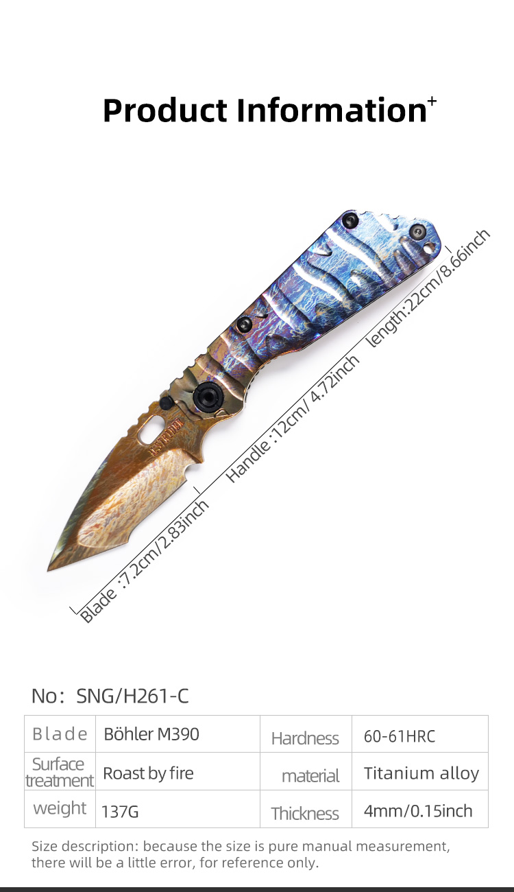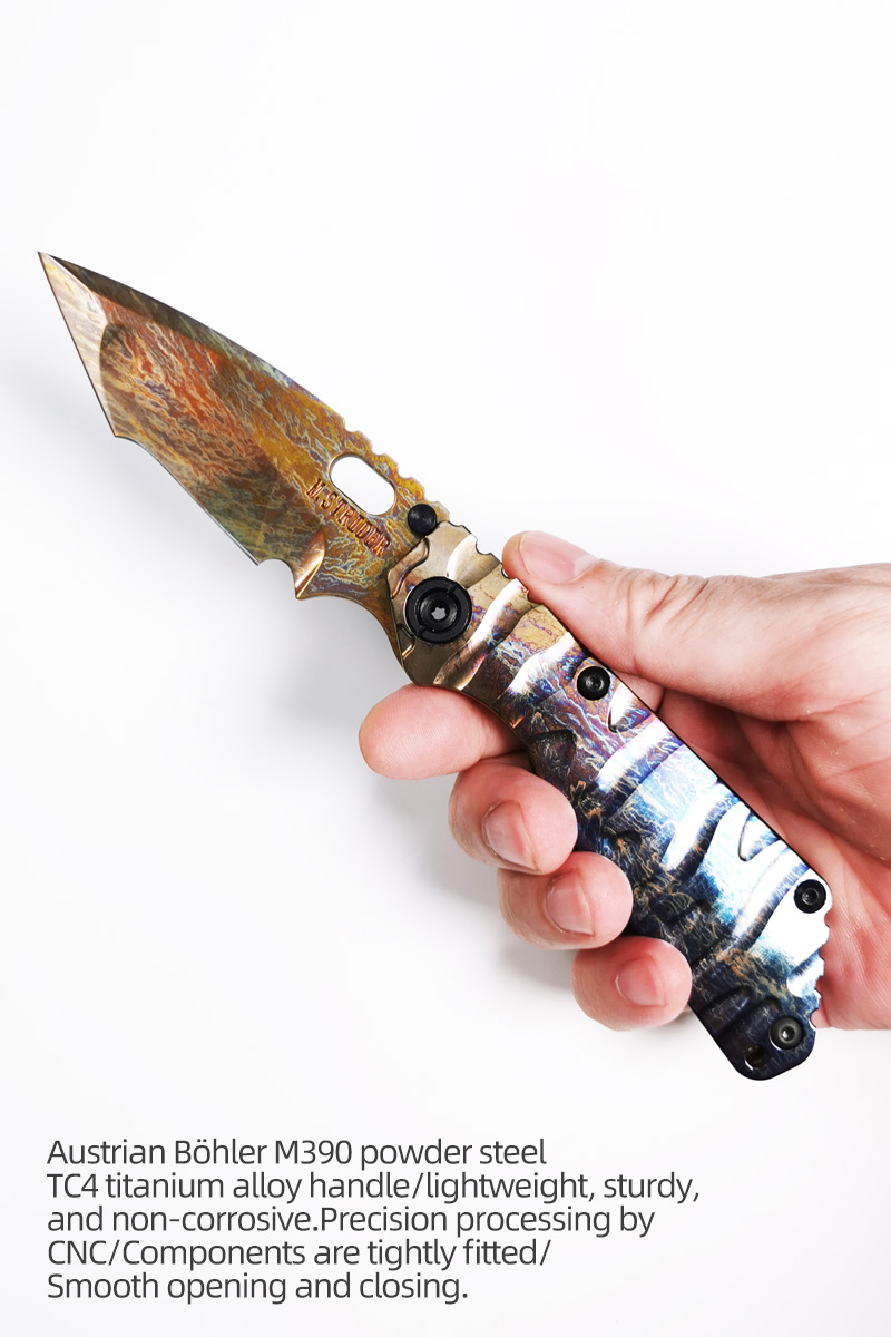 H261-C folding knife Böhler M390 high quality steel Diamond-Like Carbon titanium alloy hilt Fruit knives