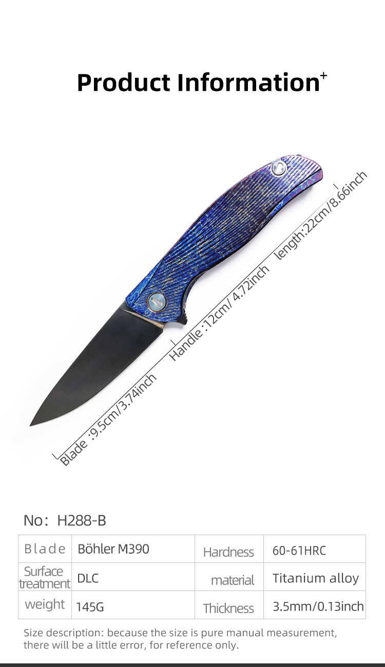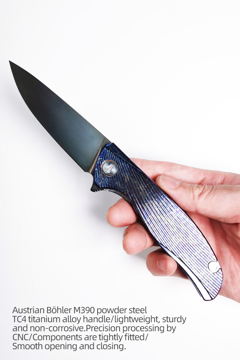 H288-B folding knife Böhler M390 high quality steel Diamond-Like Carbon titanium alloy hilt Fruit knives