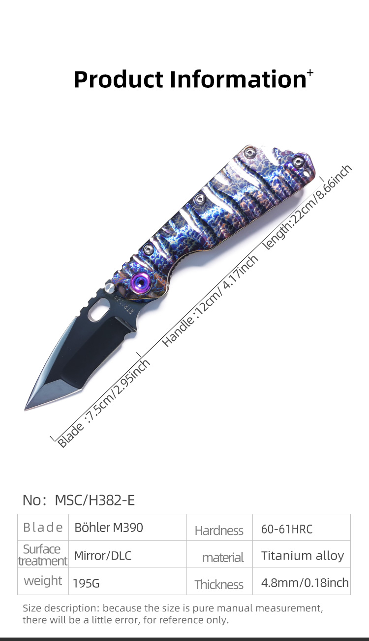 H382-E folding knife Böhler M390 high quality steel Mirror/DLC Diamond-Like Carbon titanium alloy hilt Fruit knives H382-E folding knife Böhler M390 high quality steel Mirror/DLC Diamond-Like Carbon titanium alloy hilt Fruit knives