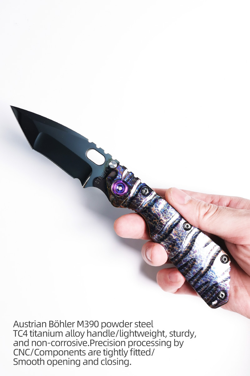 H382-E folding knife Böhler M390 high quality steel Mirror/DLC Diamond-Like Carbon titanium alloy hilt Fruit knives