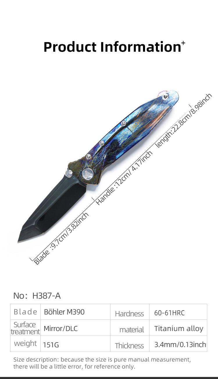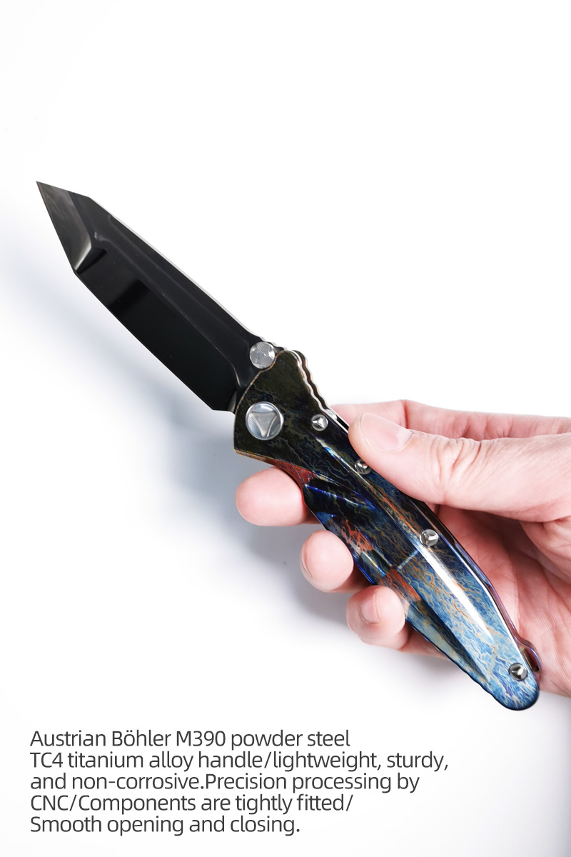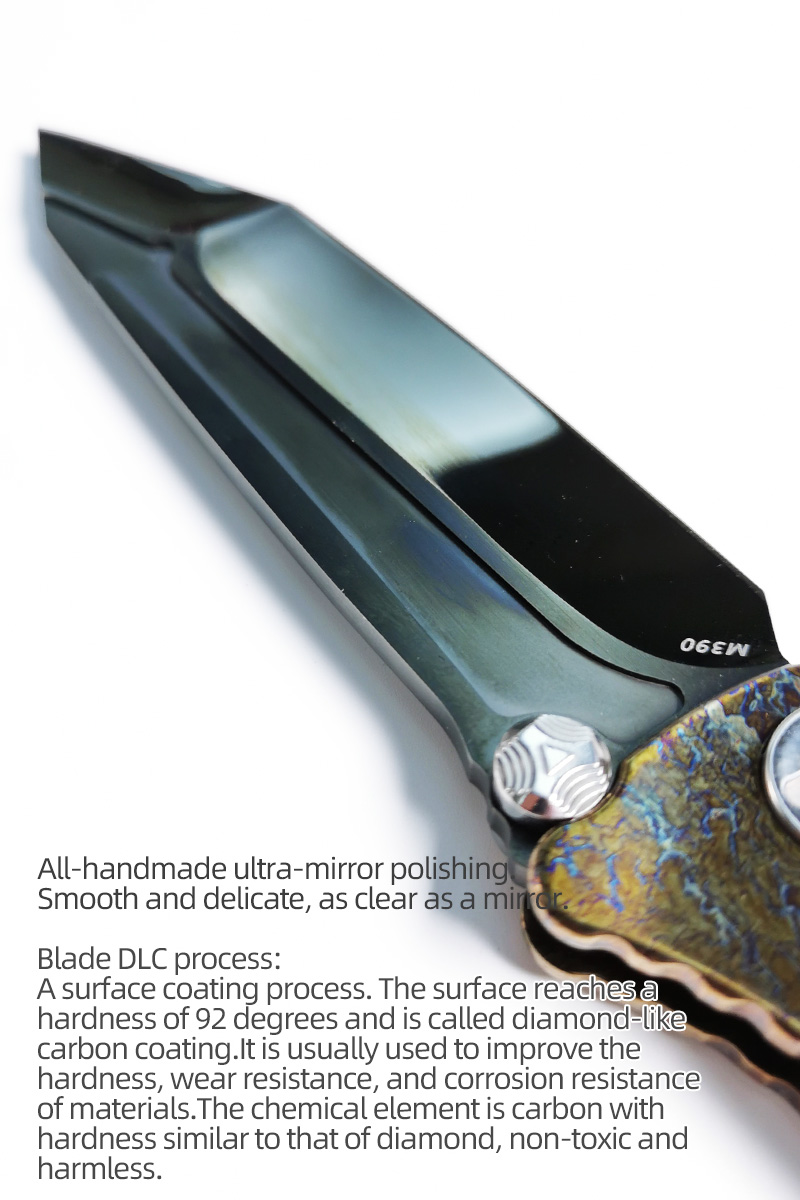 H387-A folding knife Böhler M390 high quality steel Mirror/DLC Diamond-Like Carbon titanium alloy hilt Fruit knives