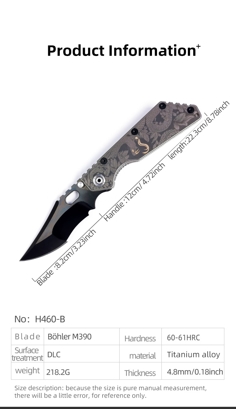 H460-B folding knife Böhler M390 high quality steel Diamond-Like Carbon titanium alloy hilt Fruit knives